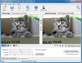 RIOT (Radical Image Optimization Tool) est un optimiseur d'images gratuit qui vous permet d'ajuster visuellement les paramètres de compression tout en minimisant la taille de vos fichiers. Son interface, avec affichage côte à côte (double vue) ou simple vue, vous permet de comparer en temps réel l'image originale et l'image optimisée, et de visualiser instantanément la taille du fichier résultant. Léger, rapide et simple d'utilisation, RIOT n'en reste pas moins puissant pour les utilisateurs avancés. Vous pourrez contrôler la compression, le nombre de couleurs, les métadonnées et bien plus encore, et choisir le format d'image (JPG, GIF ou PNG) pour votre fichier de sortie.